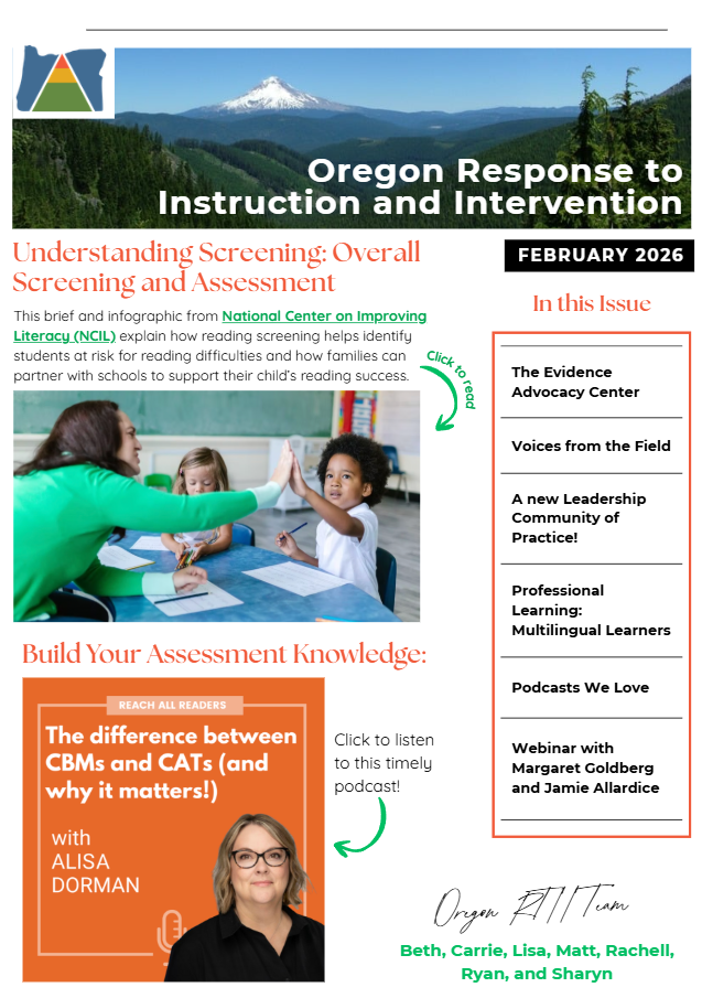 Read our most recent newsletter for information on a Leadership Community of Practice, upcoming interim assessment requirements, professional learning resources from the Portland Reading Council and Multnomah Education Service District, as well as some podcasts we’ve loved!